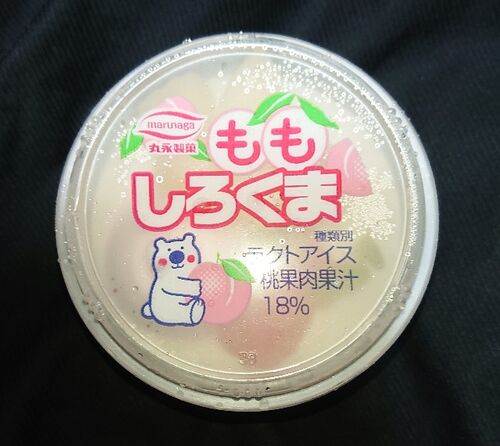 【丸永製菓 ももしろくま】を実際に購入して食べてみました。(店頭販売価格 約299円税込) やさしい甘さの桃練乳氷にフレッシュな味わいの桃フロートと白桃果肉をトッピングした桃尽くしのしろくまだそうです。 あの九州の人気のかき氷アイス「しろくま」が桃…