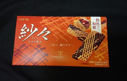 【紗々 飴色和栗】を実際に購入して食べてみました。(2020年9月15日発売 約224円税込) 栗らしい甘さと渋皮感にこだわった「和栗」のチョコに、2種のチョコを織り重ねた商品だそうです。 あのチョコレートとホワイトチョコレートを折り重ねた紗々が新しい和栗…