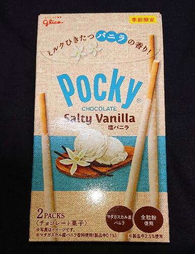 【塩バニラポッキー】を実際に購入して食べてみました。 販売サイトはこちら 【ジャンル】 (ブランド) ポッキー (メーカー) グリコ (カテゴリー) チョコ菓子 (2022年5月10日発売 値段約162円税込) マダガスカル産バニラを使用したホワイトチョコレートからバ…