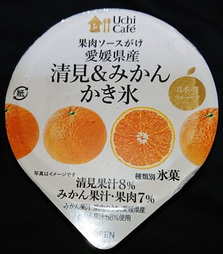 【日本のフルーツ 果肉ソースがけ 愛媛県産清見&みかんかき氷】を実際に購入して食べてみました。 【ジャンル】 (ブランド) ウチカフェ 日本のフルーツ (メーカー) ローソン限定 (カテゴリー) アイス商品、フルーツ系アイス、かき氷、氷菓 (2023年8月8日発…