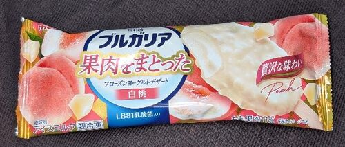 【ブルガリア 果肉をまとったフローズンヨーグルトデザート 白桃】を実際に購入して食べてみました。 【ジャンル】 (ブランド) ブルガリアヨーグルト (メーカー) 明治 (カテゴリー) アイス商品、フルーツ系アイス (2024年12月31日発売 値段約237円税込)最新…