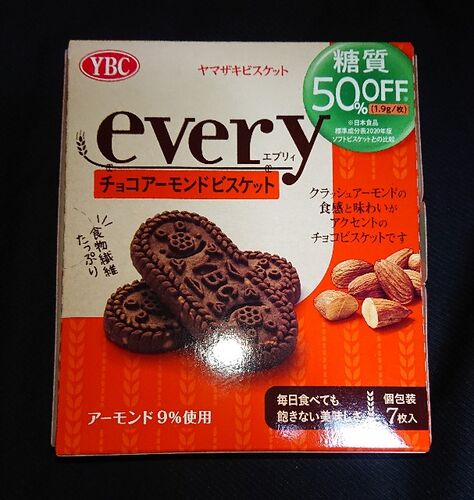 【エブリィ チョコアーモンドビスケット】を実際に購入して食べてみました。 【ジャンル】 (ブランド) エブリィ (メーカー) ヤマザキビスケット (カテゴリー) チョコ菓子、ダイエット系 (2022年3月15日発売 値段約237円税込) ヤマザキビスケットは糖質をかな…